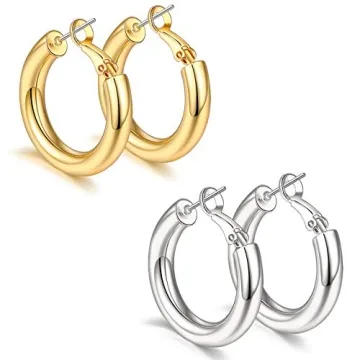 Show moreUnveil a classic addition to your jewelry box with the stunning sovesi Chunky Gold Hoop Earrings! These earrings are not just accessories; they embody the essence of modern elegance and versatility. Crafted with a 14K real gold plated finish and a resilient 925 sterling silver post, they exude a luxurious appeal while maintaining an affordability that makes them accessible for every style enthusiast. Their hollow tube design showcases a perfect blend of style and functionality. Available in sizes of 25mm, 30mm, 40mm, and 50mm in diameter, and a substantial thickness of 5mm, they make a bold statement without sacrificing comfort.