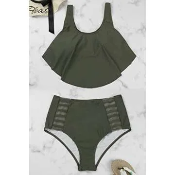 Sovoyontee Women High Waisted Plus Size Bathing Suit Army Green 4XLarge 20
