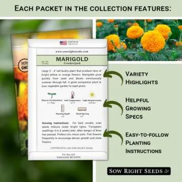 Sow Right Seeds - Annual Flower Seed Garden Collection for Planting - 5 Packets Includes Marigold, Zinnia, China Aster, Sunflower, and Cosmos - Grow in Pots or Outside, Raised Beds - Variety Pack
