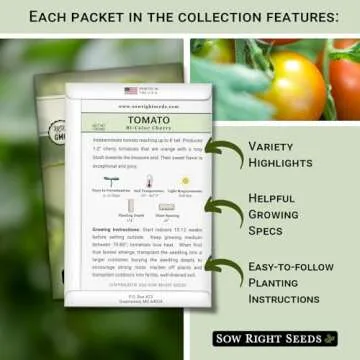 Sow Right Seeds - Cherry Tomato Seed Collection for Planting - Black, Large Red, White, Orange, Bi-Color Cherry and Yellow Pear Tomatoes - Non-GMO Heirloom Varieties to Plant a Home Vegetable Garden