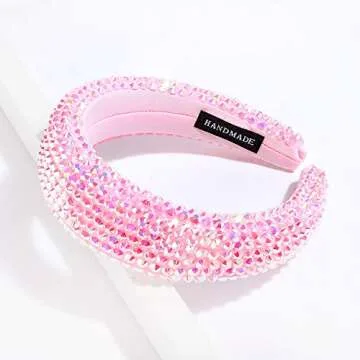 SP Sophia Collection Women's Sparkling Crystal Padded Rhinestone Wide Bejeweled Hair Headband Party Hairband Hair Accessories in Pink