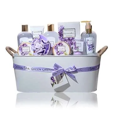 Spa Gift Baskets for Women Lavender - #1 mothers day gift set in essential oils for Relaxation -11 Pcs At Home Spa Kit - Holiday Beauty Gift Ideas, bubble Bath, Body lotion scrub, bath bomb salts
