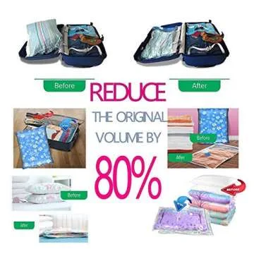 Show more Transform the way you organize your belongings with the Space Saver Bags Vacuum Compression Storage Bags, a versatile storage solution designed for both home and travel. This 11-pack set includes an assortment of storage bags—two small, two medium, two jumbo bags, and four handy roll-up bags that don’t require a vacuum. This innovative storage option not only maximizes your space but also keeps your items safe and secure. Featuring a reliable double-zip seal and a transparent design, these bags make it easy to store everything from seasonal clothing to bedding, ensuring they remain clean and compressed. With a compact hand pump included, transferring your clothes into a manageable size has never been easier. Say goodbye to clutter and hello to convenience with these efficient storage bags!