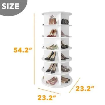 SpaceAid 6 Tier Rotating Shoe Rack Tower, Spinning Shoe Display Lazy Susan, Revolving 360 Shoe Rack Storage Round Carousel, Vertical Handbag Rotate Shoes Closet Organization (6-Tier White)