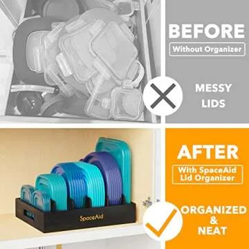 SpaceAid Bamboo Lid Organizer, Kitchen Pantry Lids Holder with 5 Adjustable Dividers for Cabinets, Food Storage Container Organizers, Black