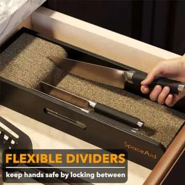 SpaceAid Knife Drawer Organizer Bamboo Insert Dock, Kitchen Steak Knives Holder Organizers Block for Drawer in Storage Organization (Small, Black)