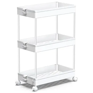 Introducing the ultimate solution for your storage challenges – the SPACEKEEPER Rolling Storage Cart, a remarkable 3-tier utility cart designed to enhance organization in any space. Whether you need a convenient rolling cart for your bathroom, kitchen, or office, this stylish and functional unit fits seamlessly into tight spots with its compact dimensions of just 8.66 inches. Effortlessly declutter your living areas while adding a touch of modern elegance to your home.