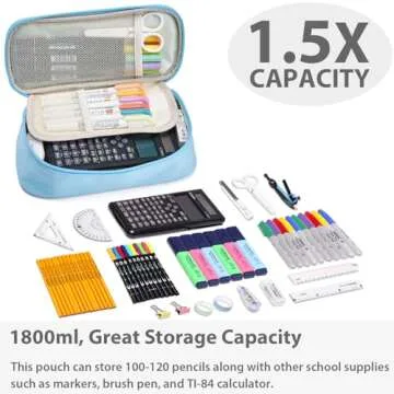 SPACEMATE Pencil Case Pouch Bag School Supplies for Girls and Boys, Large Big Capacity Aesthetic Pen Case, Simple Zipper Stationery Bag for Women Men Adults, Light Blue, 1800ml
