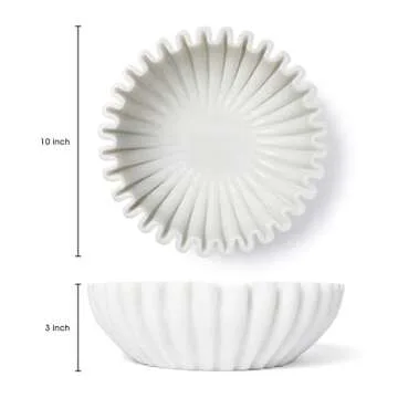 Spaceneat Fluted Marble Bowl Decorative - 10" Marble Fruit Bowl for Kitchen Counter - Large Decorative Bowls for Home Decor - Marble Ruffle Bowl, Scalloped Bowl, Stone Bowl Decorative, Concrete Bowl