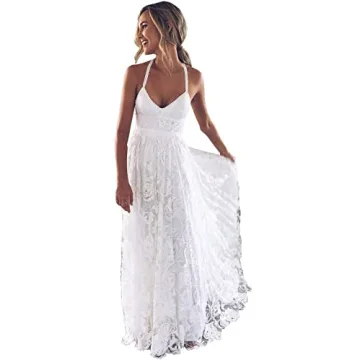 Show moreIntroducing the captivating Spaghetti Strap Halter Lace Wedding Dress by Homdor, designed to bring a touch of effortless elegance to your beach wedding! This stunning gown features a flattering mermaid silhouette, emphasizing your curves beautifully while maintaining a delicate balance of comfort and style. The chic V-neck design and spaghetti straps create a timeless look that is both modern and classic, making it ideal for brides seeking simplicity without sacrificing femininity.