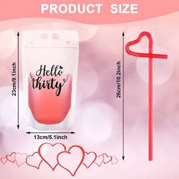 Spakon 25 Pcs Birthday Drink Pouch Cups with 25 Straws Stand up Plastic Drink Pouches Clear Zipper Bags Birthday Party Decor Juice for Adults Women Men Party Beverage Bag(Number 30th)