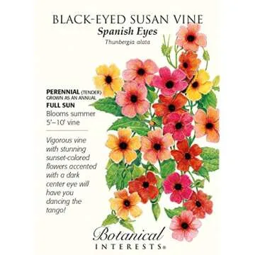 Show moreIntroducing the *Spanish Eyes Black-Eyed Susan Vine*, a stunning garden addition featuring vibrant blossoms that enchant the eye. Each pack contains 20 high-quality seeds of *Thunbergia*, promising a cascade of beautiful, bold yellow flowers adorned with deep black eyes that bloom all summer long. This perennial climbing vine is perfect for trellises, arbors, or any vertical garden setup. It's not just a plant but a performance that invites colorful interactions in your outdoor space, attracting bees and butterflies with its nectar-rich blooms.