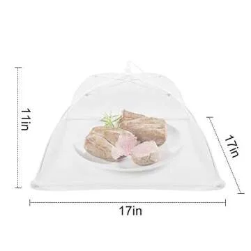 Show moreIntroducing the SPANLA Mesh Food Covers — the essential solution for all your outdoor dining needs! Say goodbye to pesky flies and insects at your next backyard BBQ, picnic, or camping trip with these expertly designed covers. Measuring a generous 17 x 17 inches, these pop-up mesh food covers are perfect for safeguarding a wide variety of dishes, from trays of appetizers to full plates of your favorite meals. Made from durable mesh, they ensure excellent ventilation while keeping your food fresh and protected.