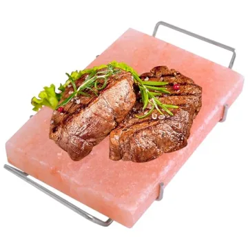 This luxurious salt block is supported by a robust, rust-resistant stainless steel tray, ensuring both durability and style. Customers rave about its high-quality construction, highlighting how the salt block holds heat exceptionally well, allowing for perfectly cooked meats that are bursting with flavor. A previous user noted a significant improvement when compared to lesser-quality options, praising the sturdiness and visually appealing design of the tray.
