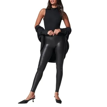 Show more Experience the unmatched combination of style, comfort, and versatility with the SPANX Faux Leather Leggings. Designed to hug your body in all the right places, these leggings transition effortlessly from day to night, ensuring you always look and feel fabulous. Made from sleek, high-quality faux leather, they provide you with a luxurious look while maintaining a comfortable fit. The contoured Power Waistband delivers targeted tummy control, enhancing your silhouette and boosting your confidence from morning meetings to evening outings.