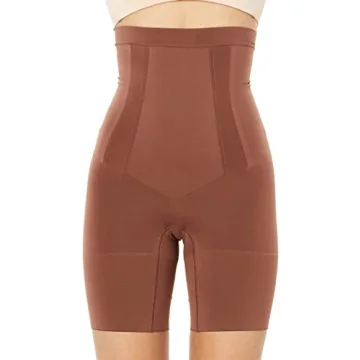 Show moreIntroducing the SPANX Shapewear for Women Oncore High-Waisted Mid-Thigh Short in a rich Chestnut Brown, an essential addition to your wardrobe that perfectly blends style and functionality. This innovative shapewear is specially crafted to provide a comfortable high-waisted fit that gently smooths your silhouette without compromising on comfort. Designed with fully-bonded front panels for tummy control and edge-bonded side panels to ensure a squeeze-free slimming experience, it’s the ideal undergarment for those seeking lasting support. Whether you’re gearing up for a glamorous evening out or simply wanting to enhance your everyday look, this sculpting shaper promises you’ll feel confident and beautifully put together.