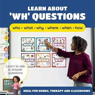 This set is especially beneficial for children with learning delays, autism, language disorders, and for those in special education as well as regular education. The posters serve as a crucial reference for teachers and parents alike, helping children make sense of the various questions we regularly use in conversation. The laminated finish ensures they are durable and can withstand wear and tear, making them ideal for repeated use in classrooms and at home.