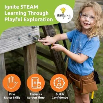 SparkJump Deluxe Kids Tool Set, Real Tools with Leather Tool Belt & Tool Box, Beginner Tool Kit for Boys & Girls Ages 6+, Brown Tool Belt