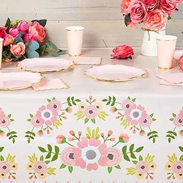 The Sparkle and Bash Pink Floral Plastic Tablecloth is perfect for: