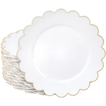 Sparkle and Bash White Plastic Plates with Gold Scalloped Edge (9 Inches, 50 Pack)