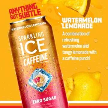 Sparkling Ice Watermelon Lemonade Sparkling Water with Caffeine, Zero Sugar, with Antioxidants and Vitamins,16 fl oz Cans (Pack Of 12)