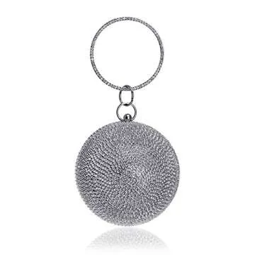 Sparkling Round Clutch Purse Women Crystal Evening Bag for Wedding Party, Silver, Small