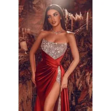 Show moreStep into the spotlight with our stunning Sparkly Sequins Bridesmaid Dresses, designed to make every occasion unforgettable. This exquisite mermaid prom dress features luxurious satin embellished with glittering sequins, ensuring you dazzle at any formal event. Crafted with a backless silhouette and a daring high slit, this gown elegantly showcases your silhouette while exuding a sense of sophistication and glamour. The adjustable strapless neckline and built-in bra offer comfortable wear, perfect for all-day festivities. Available in rich colors like classic black, gold, and flashier Hollywood-inspired styles, this formal dress is ideal for 2025 prom trends and beyond.