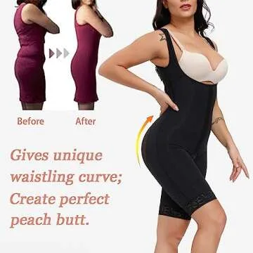 The shapewear features a front open crotch design, making it convenient for bathroom use without needing to remove the garment.