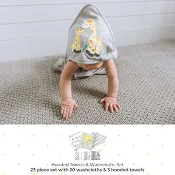 Show moreIntroduce your little one to the ultimate bathing experience with the Spasilk Bath Hooded Towels & Washcloths Set for Babies. This impressive 23-piece gift set is designed with both functionality and comfort in mind, making bath time more enjoyable for both you and your baby. The beautiful grey color and adorable designs are perfect for little ones, instantly brightening up their bath routine. Crafted from high-quality materials, these towels provide a plush, soft feel against your baby's sensitive skin while also being highly absorbent to help dry them off quickly after their bath. Enjoy peace of mind knowing that your baby is wrapped in comfort after a fun splash session with our stylish hooded towels that are both cozy and cute!
