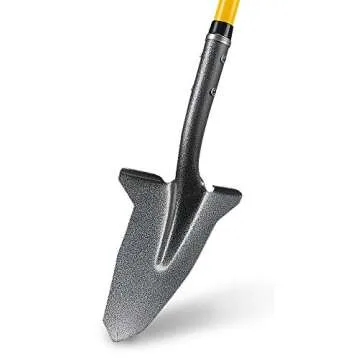 The Spear Head Spade features a steel-reinforced fiberglass handle for strength and a cushioned D-grip for comfort, paired with a sharp hardened-steel blade that enhances digging efficiency.