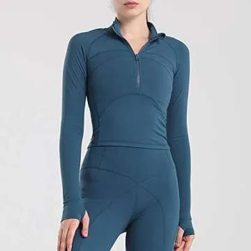 Specific Heart Women's Yoga Jacket 1/2 Zip Pullover Thermal Fleece Athletic Long Sleeve Running Top with Thumb Holes