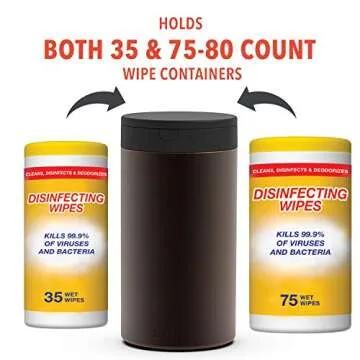 The dispenser holds both 35-count and 75-80 count disinfecting wipe containers.