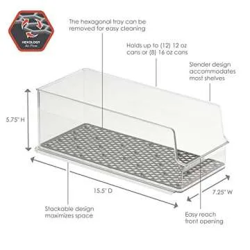 Spectrum Hexa in-Fridge Bin, Tall Holder Dispenser Rack for Storage and Organization, Holds Drink Cans, Meats, Produce, and More, Clear