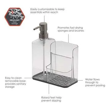 Spectrum HEXA Sponge & Brush Organizer With Soap Pump, Kitchen Sink Organizer With Refillable Soap Pump, Sponge & Dish Brush Holder Easy-Clean Sink Organization & Dish Brush Holder with Removable Base