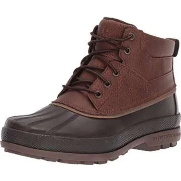 Show moreIntroducing the Sperry Men's Cold Bay Chukka Boots, your ultimate winter companion that blends style with exceptional functionality. Crafted for those who refuse to let cold weather stifle their sense of fashion, these boots feature a rich brown and coffee color palette that complements a variety of outfits. The exterior is designed with durable waterproof materials that protect against the harshest elements while offering a stylish profile that's perfect for both adventurous outdoor activities and casual everyday wear.
