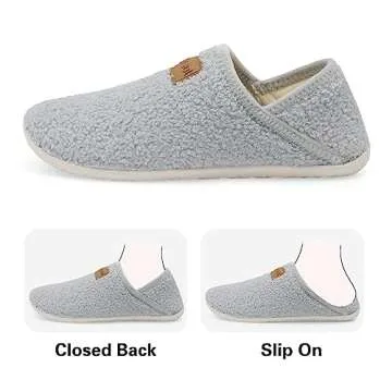 Show more The SPESOUL fuzzy house slippers offer a remarkable blend of comfort, practicality, and style that makes them a must-have for anyone looking to pamper their feet. These innovative slippers are designed with a versatile approach: featuring two types of closures, they can be worn as slip-ons or with a closed back like traditional loafers, allowing you to easily put them on or take them off as you please. Made from a combination of soft polar fleece and durable suede, these slippers are incredibly lightweight, providing a barefoot feel that is as freeing as it is comforting.