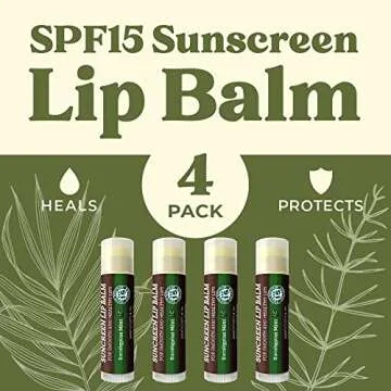 SPF Lip Balm 4-Pack by Earth's Daughter - Lip Sunscreen, SPF 15, Organic Ingredients, Eucalyptus Mint Flavor, Beeswax, Coconut Oil, Vitamin E - Hypoallergenic, Gluten Free