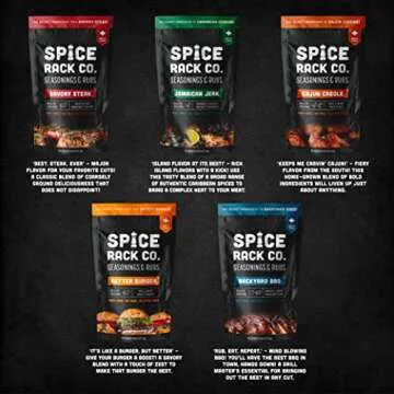 Show moreIntroducing the Spice Rack Co. BBQ Seasonings And Rubs, a must-have collection for anyone passionate about grilling and smoking. Perfectly crafted for both the amateur chef and the seasoned grillmaster, this unique 5-pack spice set features five tantalizing flavors designed to elevate your cookout experience. With Savoury Steak, Better Burger, Backyard BBQ, Cajun Creole, and Jamaican Jerk, your culinary adventures will be as exciting as they are delicious.
