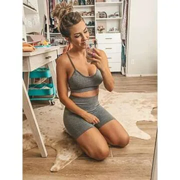 SPICE UNION Workout Shorts Womens for Running Yoga Biker Gym High Waist Spandex Ribbed Seamless Athletic Leggings(S010M-hehuilv)