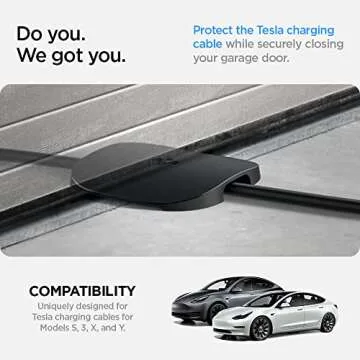 Show more The Spigen DuraPro Cable Garage Door Pass Protector is an innovative solution for Tesla owners looking to secure their charging cables while maintaining the utmost functionality of their garage doors. Crafted from DuraPro, this heavy-duty protector ensures maximum durability and effectiveness. It fits snugly with the Tesla Mobile Connector and Gen 3 Wall Connector, ensuring a secure and flush fit every time.