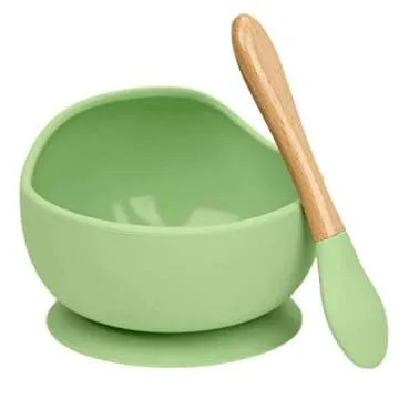 Spill-Free Suction Silicone Training Bowl Feeding Set with Spoon (Light Green)