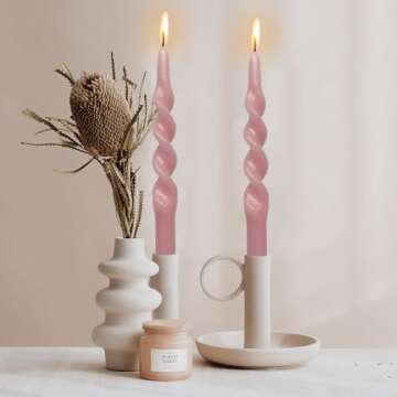 Show moreIntroducing our **Spiral Taper Candle Twisted Candlesticks** in a stunning **Pink hue**—a delightful addition to your home decor, perfect for any special occasion. Crafted from high-purity paraffin wax and featuring clean cotton wicks, these unscented 10-inch taper candles ensure a smokeless burn that keeps your indoor environment fresh and clean. Whether you're celebrating a wedding, hosting a dinner party, or simply wish to create a romantic setting at home, these elegant candles offer an ambiance that is both inviting and sophisticated.