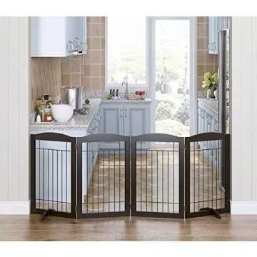 Featuring non-slip rubber feet, the gate protects your floors from scratches while ensuring stability, even with the most energetic pets. Customers rave about its sturdy build and elegance, stating it fits beautifully into any decor. Whether it’s keeping Great Danes away from the Christmas tree or preventing your puppy from accessing the cat litter box, the Spirich Pet Gate is designed with both functionality and aesthetics in mind. Its espresso color not only looks attractive but also seamlessly blends into your home.