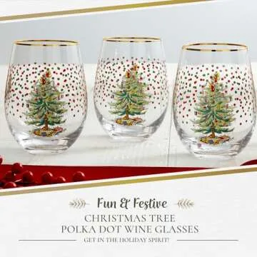 Why You will Love This Product? The Spode Christmas Tree Stemless Wine Glasses are more than just drinkware; they become part of your family’s holiday rituals. Imagine the laughter, clinking of glasses, and warm conversations they will witness, creating beautiful memories that are passed down through generations. Their elegant design and premium quality will fill your table with warmth and sophistication, making each occasion truly memorable. You'll not only enjoy your favorite beverages, but you'll also celebrate the essence of togetherness, nostalgia, and joy that the holiday season brings.