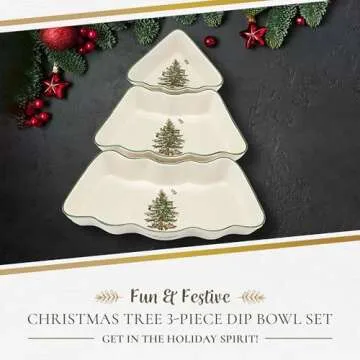 When compared to other holiday dip bowls, the **Spode Christmas Tree Dip Bowl Set** stands out through its unique blend of tradition and practicality. Most competitors use plastic materials that can discolor and absorb smells, whereas our ceramic bowls are odor-resistant and maintain their vibrant design season after season. Additionally, many competing brands lack the festive charm and nostalgic designs that make our bowls a true conversation starter at any gathering. The Spode set offers a perfect combination of durability, beauty, and easy care that simply can't be matched.
