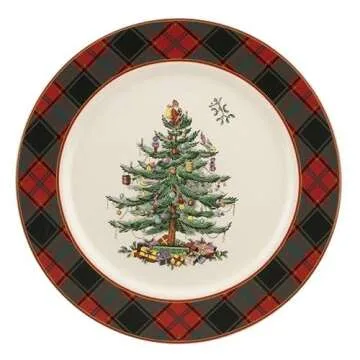 Show more Welcome the festive season with elegance and charm using the Spode Christmas Tree Tartan 12-inch Buffet Plate. This enchanting serving platter is beautifully adorned with the iconic Spode Christmas Tree, artfully encircled by a traditional tartan plaid border. This timeless design seamlessly merges rustic warmth with sophistication, making it the perfect centerpiece for holiday feasts. Its ample size allows you to artfully present everything from appetizers to main courses and delightful desserts, adding an undeniable festive flair to your table setting. Your gatherings will shine with this exquisite piece!