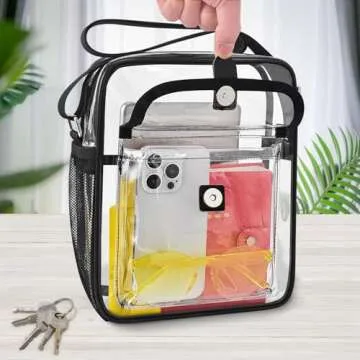 Available in two generous sizes—Medium (10.5 x 8.5 x 3 inches) and Large (12 x 10 x 4.5 inches)—the SPODEARS Clear Bag is perfect for carrying all your essentials. It features a handy clear inside pocket for storing smaller items, a side mesh pocket for water bottles, and a headphone jack that doubles as a USB charging port. You'll love the front pocket with magnetic closure that allows for quick access to your phone or wallet. Whether you're heading to a festival, event, or beach day, this bag has ample room for everything you need.