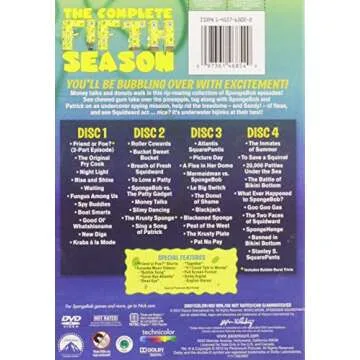 Imagine gathering your family or friends to relive the moments that made your childhood so special, full of laughter and joy. With the SpongeBob SquarePants: Complete Fifth Season DVD, you'll be reminded of the importance of friendship, optimism, and fun. This series not only entertains but also inspires its viewers to embrace their uniqueness. Prepare to be whisked away on a whimsical journey beneath the waves, where every episode is bursting with creativity and humor. Let the good times roll as you sit back and enjoy the antics of SpongeBob and his underwater friends!