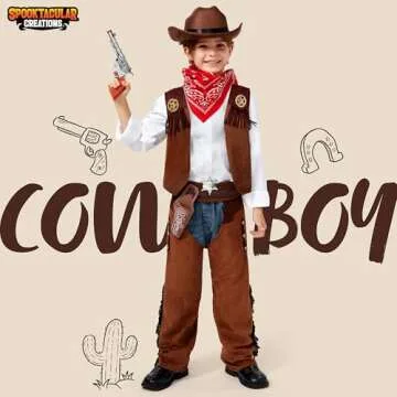 Spooktacular Creations Halloween Cowboy Costume for Boys, Kids Brown Western Costume, Deluxe Cowboy Outfit Set with Hat for Toddler Halloween Dress-up, RolePlay Themed Party (3T, 3-4 yrs)