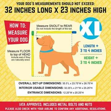 Show moreIntroducing the SportPet Designs Plastic Kennels Rolling Plastic Airline Approved Wire Door Travel Dog Crate, the perfect traveling companion for your furry friend! Made from sturdy and durable plastic, this X-Large kennel measures under 32” L x 24” H, making it ideally suited for larger breeds while ensuring compliance with airline regulations. With an IATA approval, this kennel is designed for safe travel, equipped with two dishes, four live animal stickers, and included metal bolts and nuts for secure assembly. Say goodbye to cumbersome crates and hello to effortless travel!